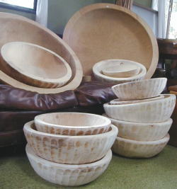 | 秋山木鉢 匠の技と手造りの温もりが伝わる伝統工芸品。 豊富な栃の木を原料に手彫りで作られる木鉢は、内側に細かい目を刻み、粉が付かないように工夫されています。 |