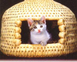 猫つぐら 猫を寒さから守るかわいいお家。 1本1本、わらを丁寧に編み込んだわら細工の手づくりの暖かさが人気を呼んで全国から注文が絶えません。 |